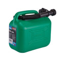 This five litre UN-certified fuel can is manufactured from high-quality virgin HDPE plastic. It's suitable for storing in a vehicle or in the garage, and its green colour makes it ideal for use with unleaded fuel. Supplied with a tethered flexible spout for controlled flow. Also available in black for colour-coded use with diesel fuel (Stock No. 09053).