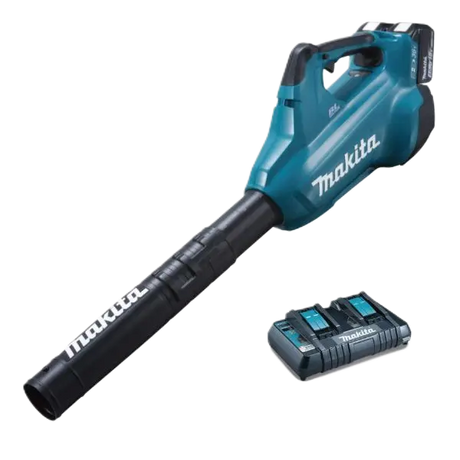 MAKITA TWIN 18V BRUSHLESS BLOWER WITH 2X 6.0AH BATTERIES AND DC18RD TWIN PORT CHARGER
