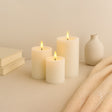 Create a cozy and inviting ambiance without the worry of real flames with this elegant De Vielle set of three flameless LED pillar candles
