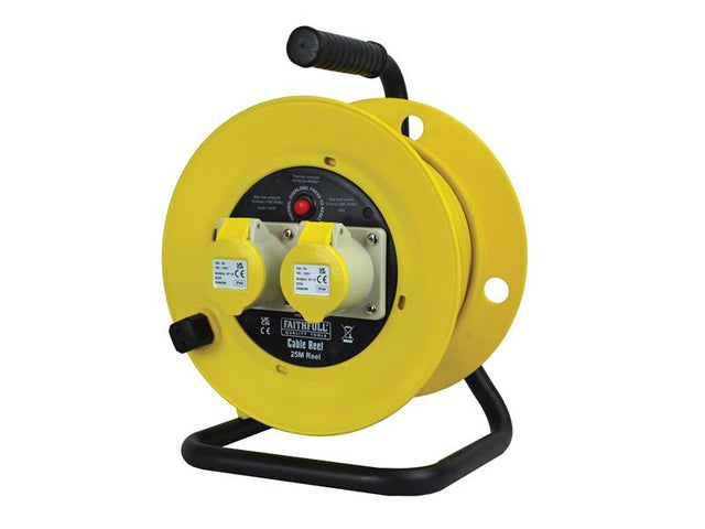 Faithfull Power Plus Open Drum Cable Reel 110V 16A 2-Socket 25m (1.5mm Cable)