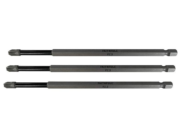 Faithfull Pozidriv Impact Screwdriver Bits PZ3 x 150mm (Pack 3)