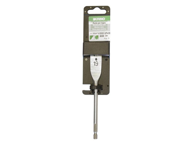 1 x Krino Flat Wood Drill Bit 19 x 150mm supplied in retail packaging with a hanging hook.